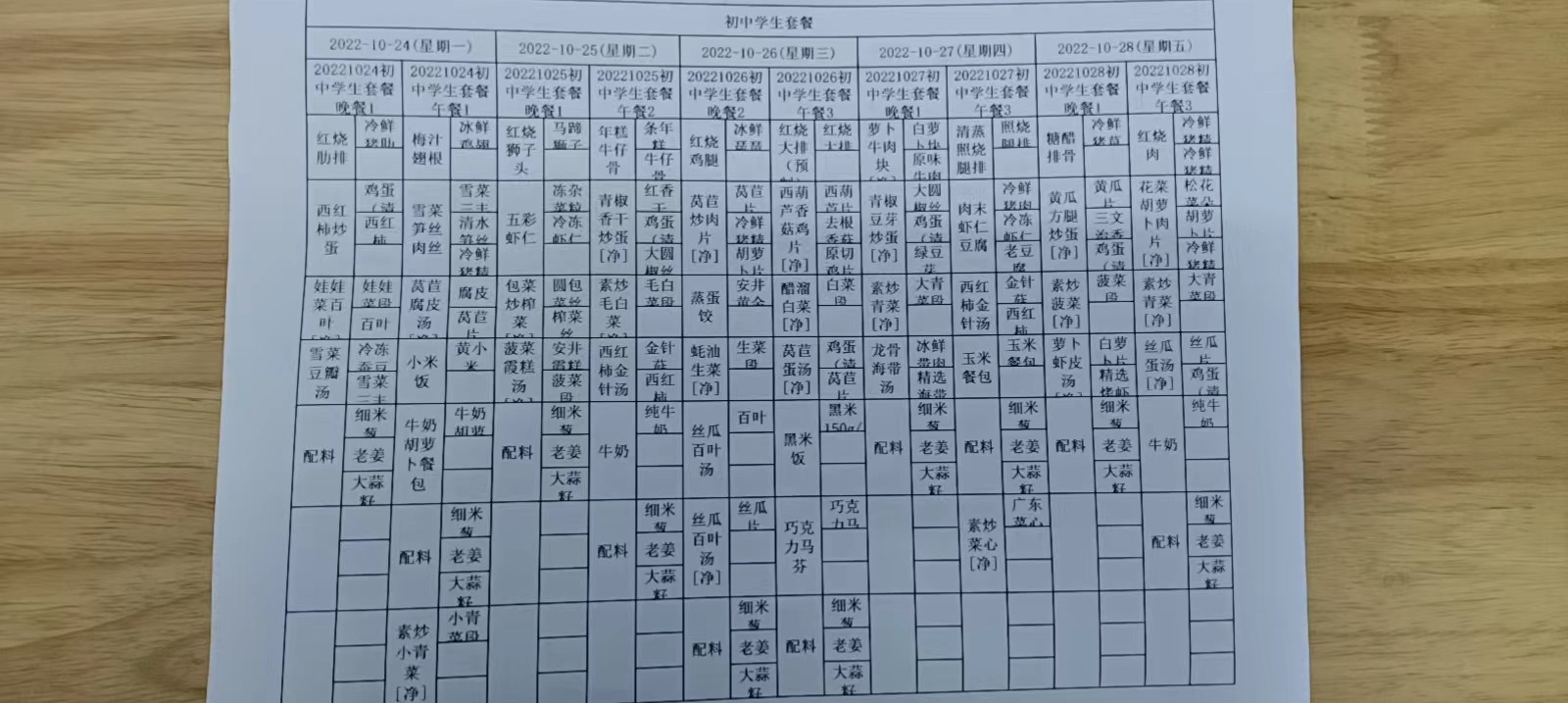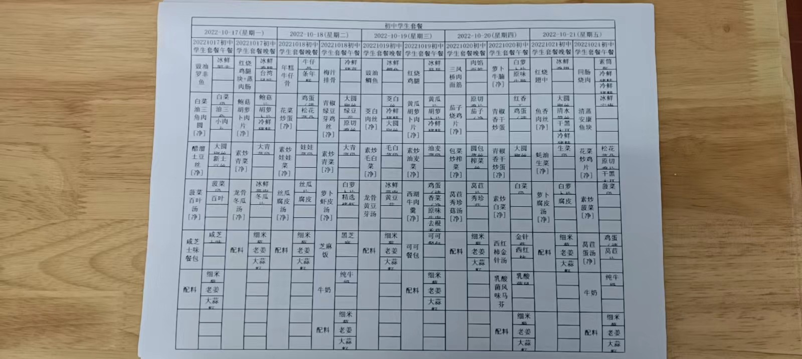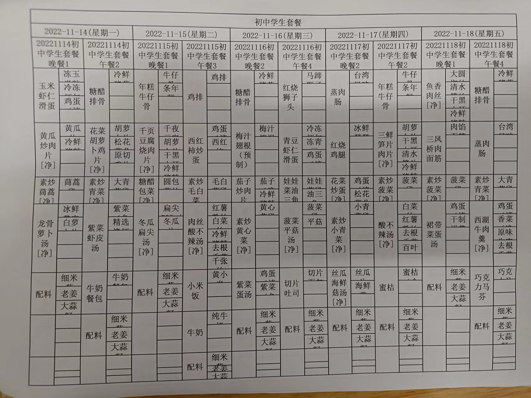 • 第一周学生菜单