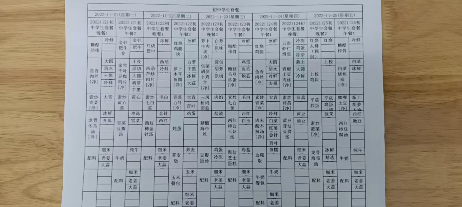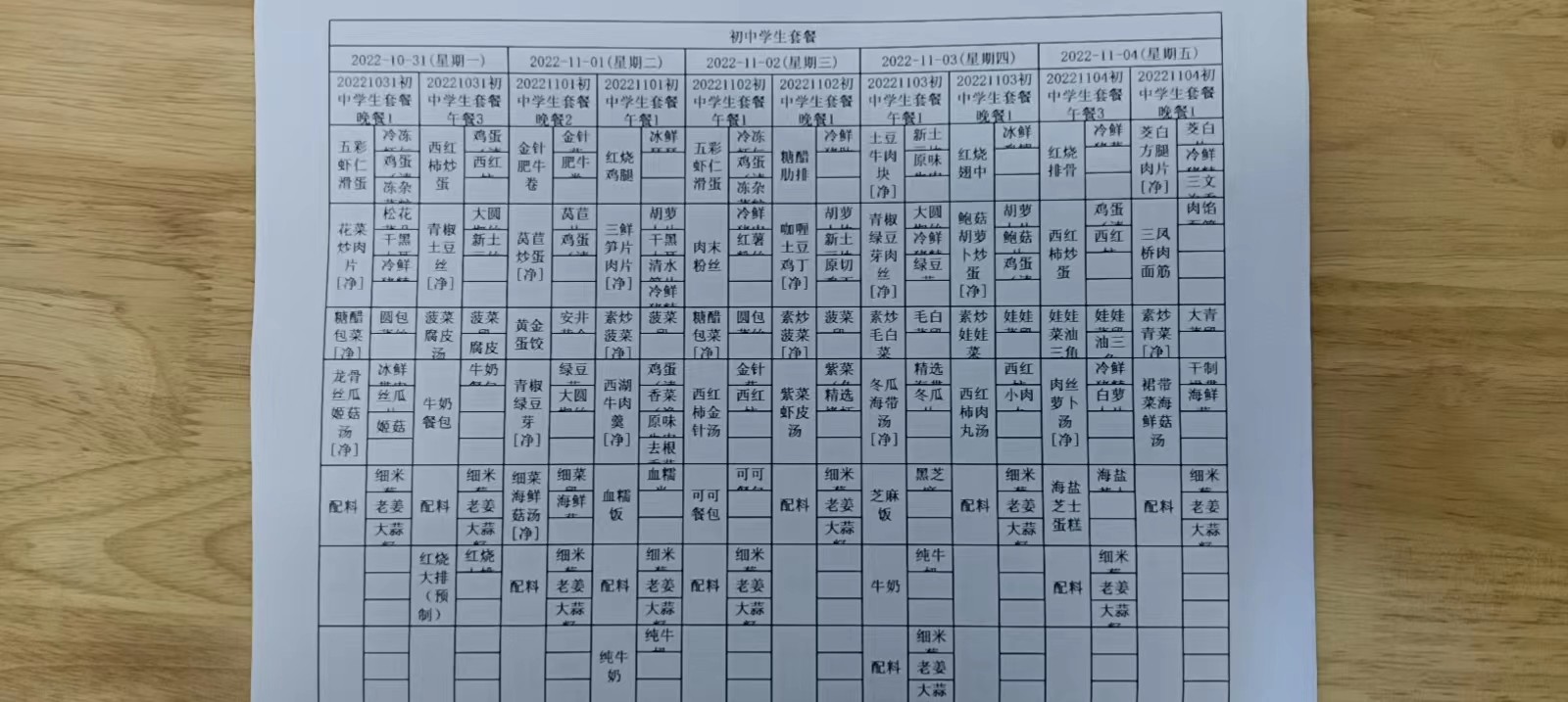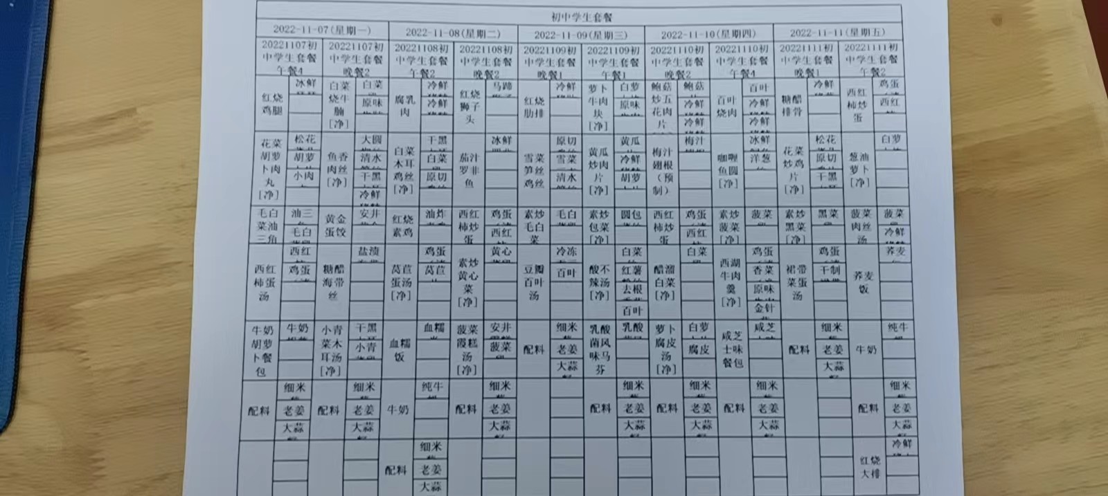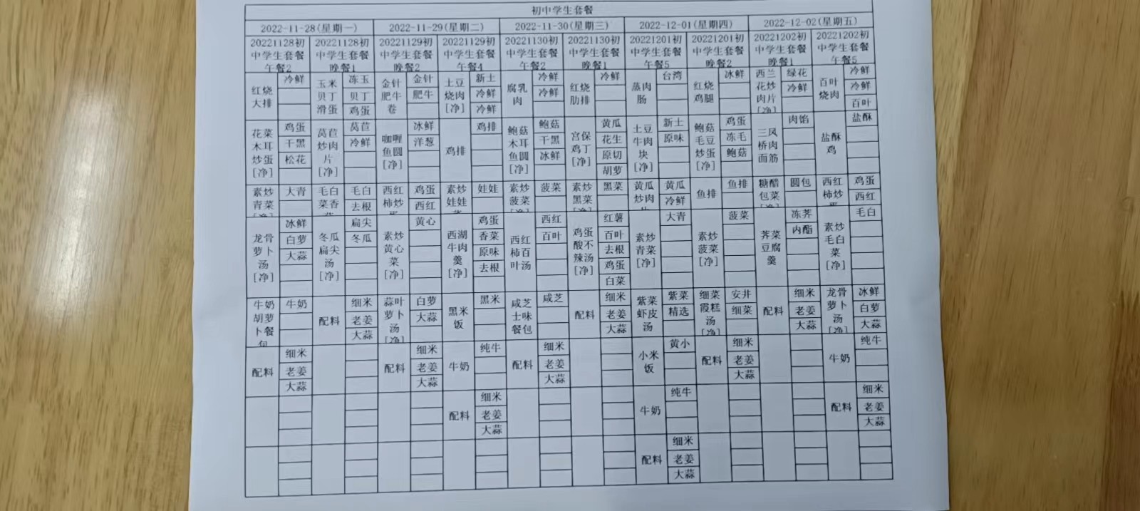 • 第一周学生菜单