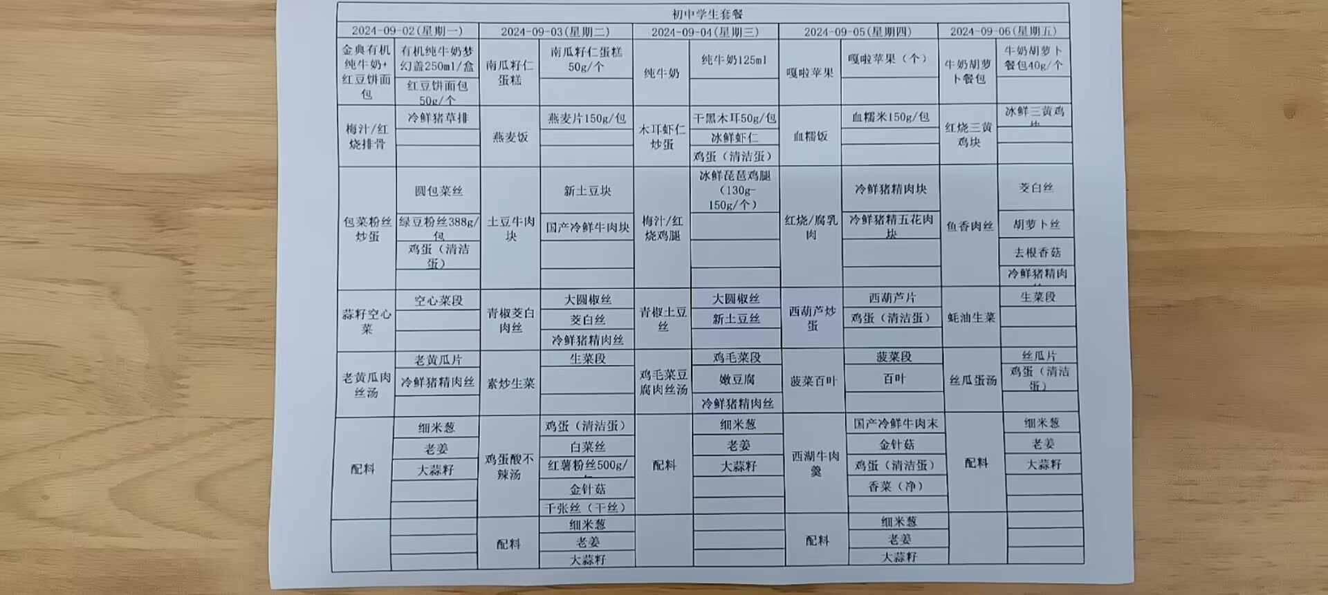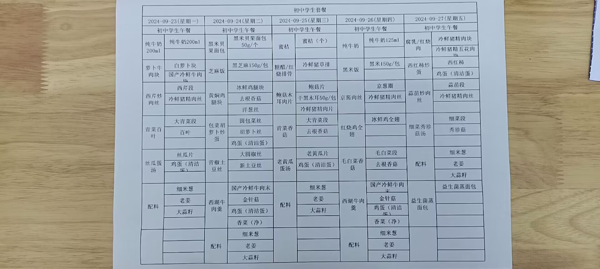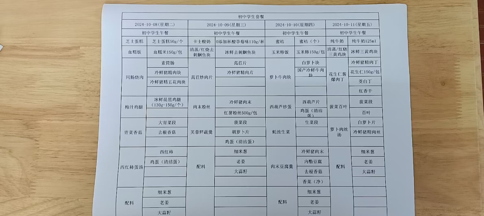 • 第一周学生菜单