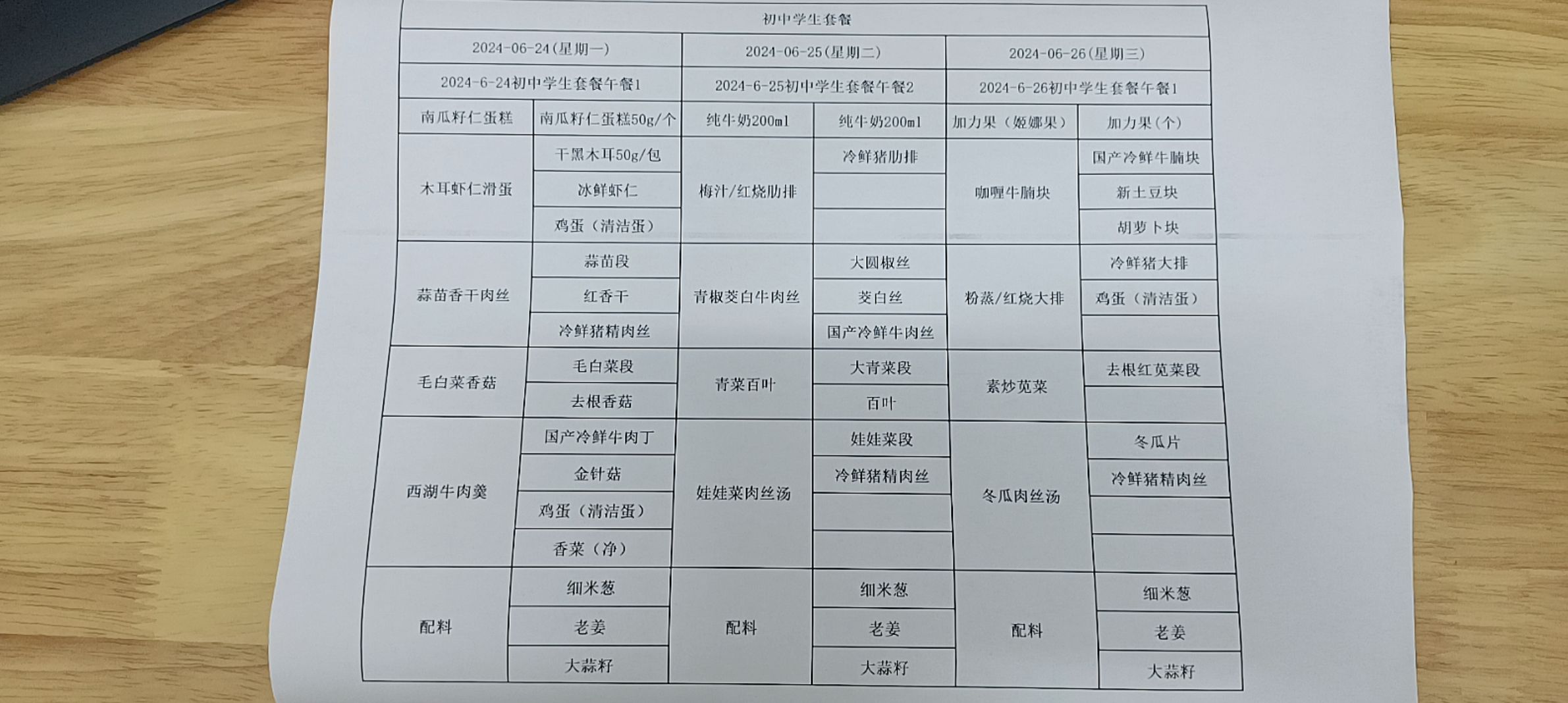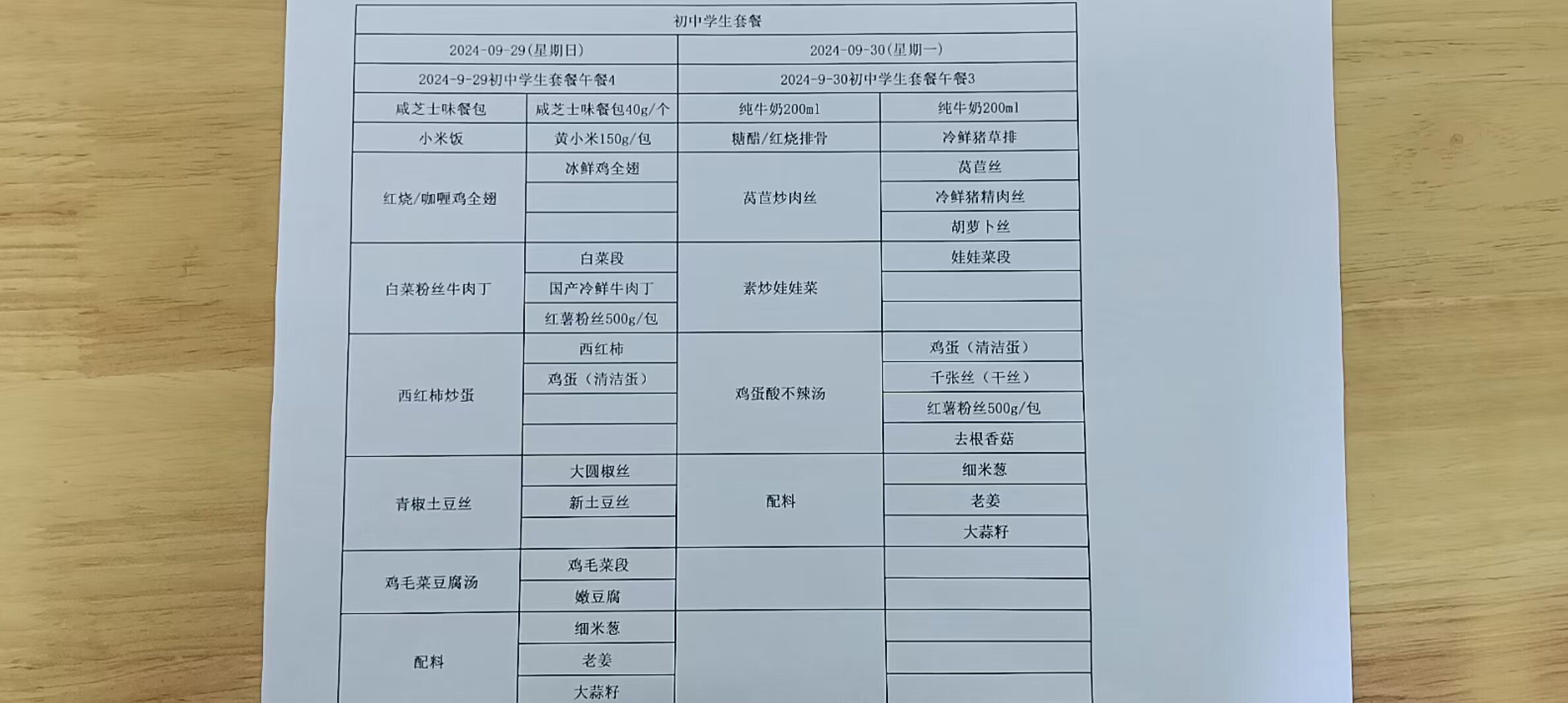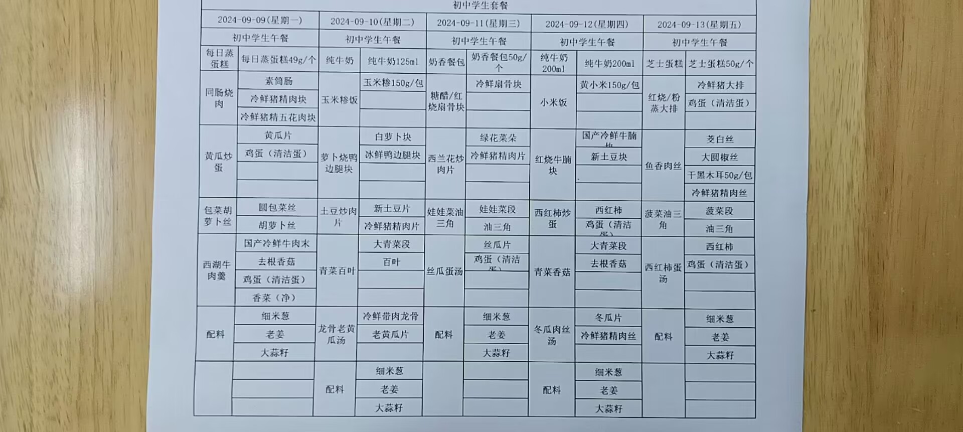 • 第一周学生菜单
