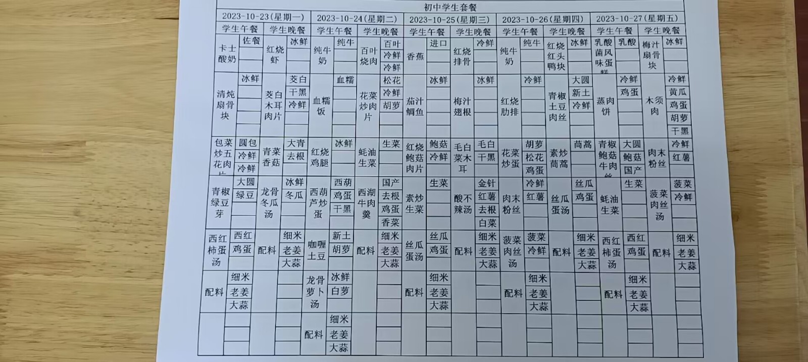 • 第十周学生菜单