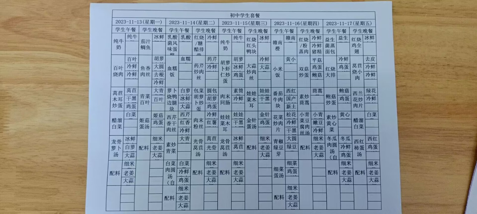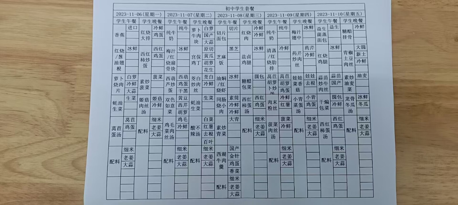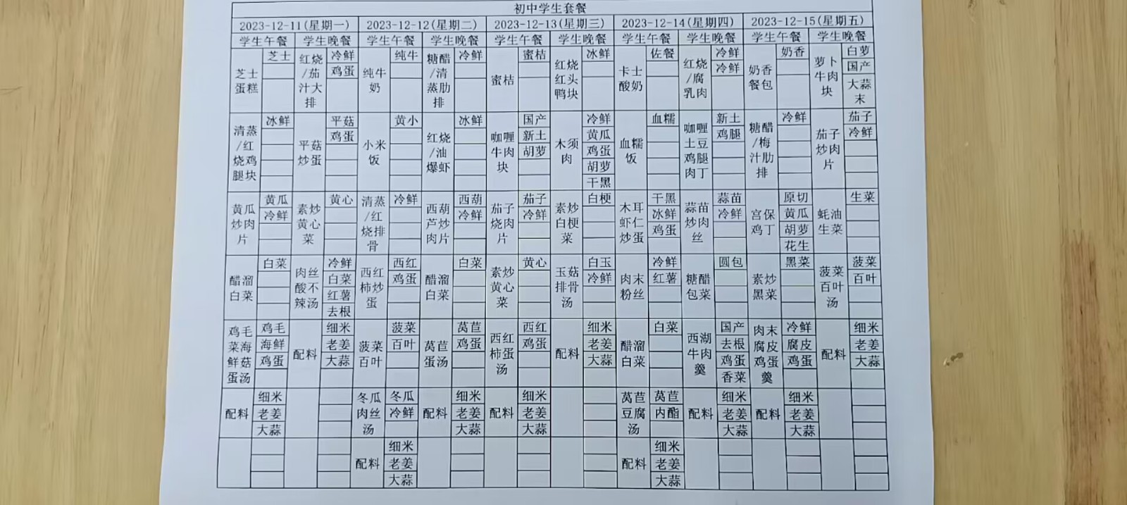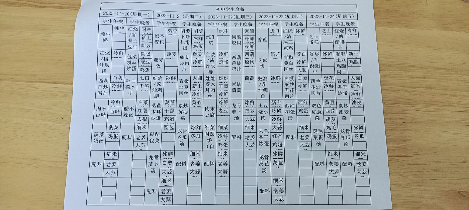 • 第十一周学生菜单