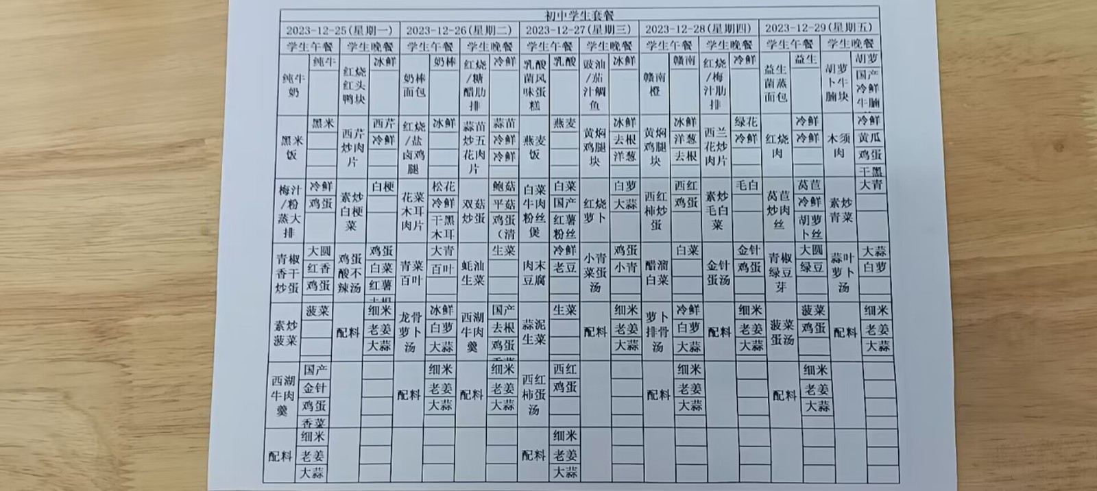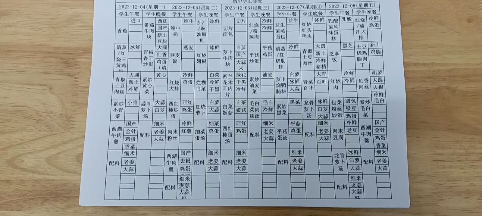 • 第十五周学生菜单