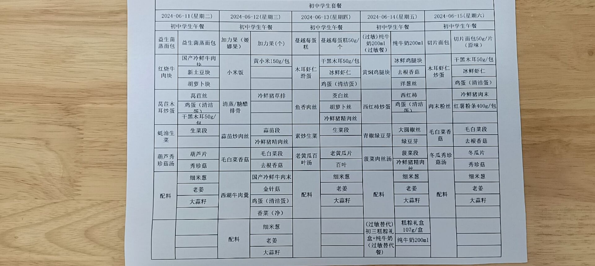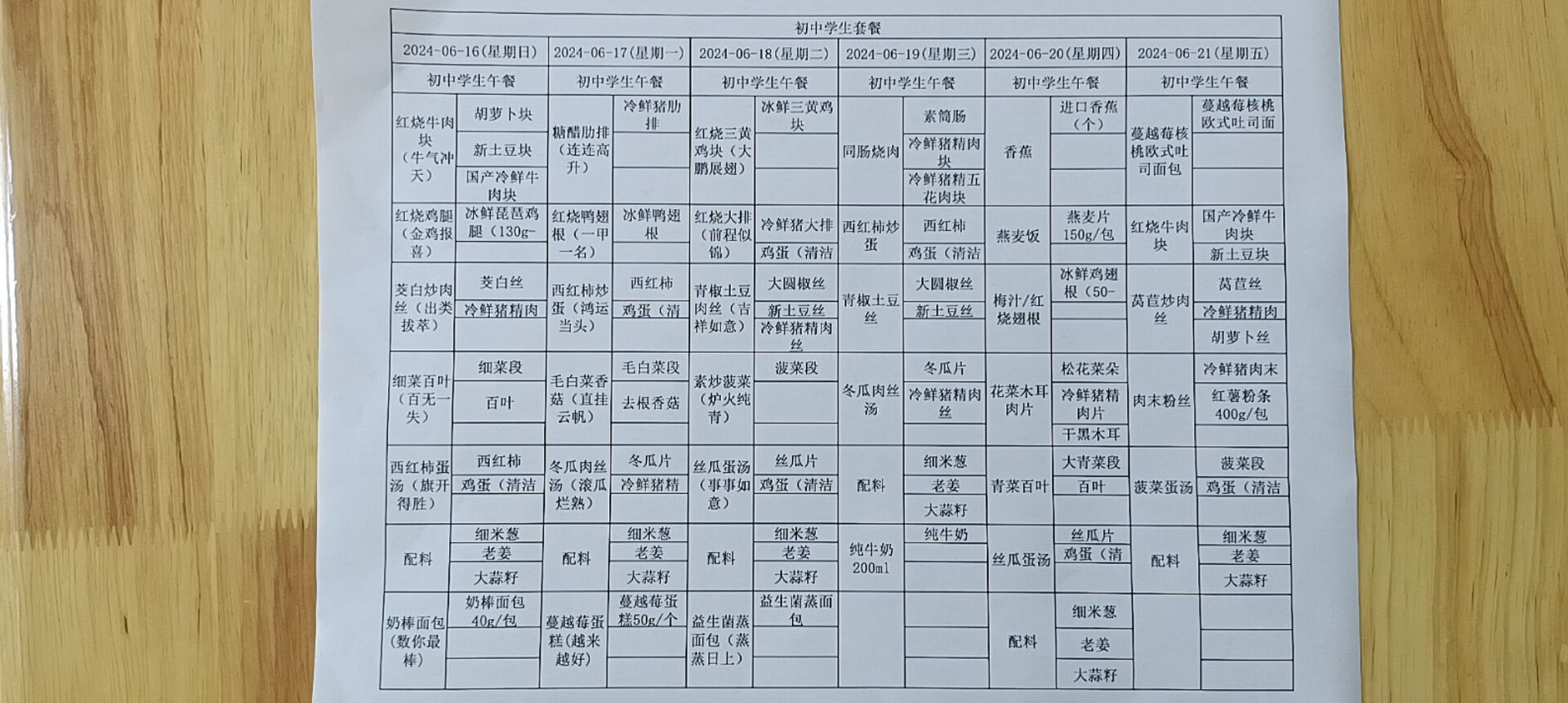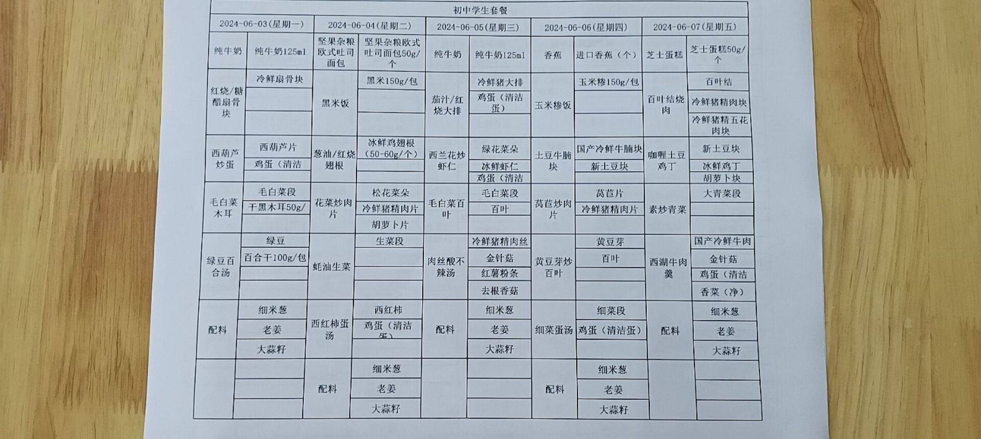 • 第一周学生菜单